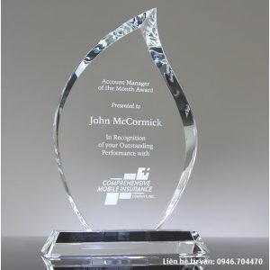 Kỷ niệm chương thủy tinh đẹp với nhiều mẫu kỷ niệm chương thủy tinh đẹp như ngọn lửa, cánh buồm, hình tròn, chiếc lá…được sản xuất trực tiếp tại xưởng Công ty TNHH Sản xuất Thương mại Song Ngưu. Khách hàng khi đặt hàng tại xưởng chúng tôi sẽ nhận được mức giá thấp nhất, giao hàng theo yêu cầu với thời gian nhanh nhất.