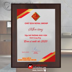 Bằng khen tập thể xuất sắc, kỷ niệm chương gỗ đồng, biểu trưng tôn vinh gỗ đồng. Bảng chứng nhận đại lý, quà tặng tri ân gỗ đồng, bảng biểu trưng cao cấp được sản xuất từ Công ty Song Ngưu. Nội dung thiết kế theo yêu cầu riêng. Đáp ứng được hầu hết những nhu cầu của khách hàng.