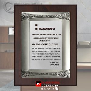 Bảng vinh danh bạch kim cao cấp, kỷ niệm chương gỗ đồng, biểu trưng tôn vinh gỗ đồng. Bảng chứng nhận đại lý, quà tặng tri ân gỗ đồng, bảng biểu trưng cao cấp được sản xuất từ Công ty Song Ngưu. Nội dung thiết kế theo yêu cầu riêng. Đáp ứng được hầu hết những nhu cầu của khách hàng.