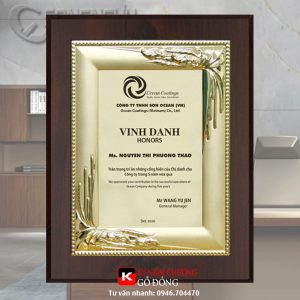 Bảng vinh danh khen thưởng nhân viên, kỷ niệm chương gỗ đồng, biểu trưng tôn vinh gỗ đồng. Kỷ niệm chương thâm niên, quà tặng tri ân gỗ đồng, bảng biểu trưng cao cấp được sản xuất từ Công ty Song Ngưu. Nội dung thiết kế theo yêu cầu riêng. Đáp ứng được hầu hết những nhu cầu của khách hàng.