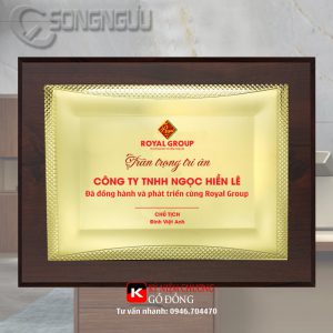Bảng vàng tặng đối tác, kỷ niệm chương gỗ đồng, biểu trưng tôn vinh gỗ đồng. Bảng chứng nhận đại lý, quà tặng tri ân gỗ đồng, bảng biểu trưng cao cấp được sản xuất từ Công ty Song Ngưu. Nội dung thiết kế theo yêu cầu riêng. Đáp ứng được hầu hết những nhu cầu của khách hàng.