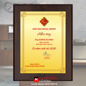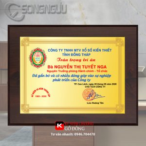 Bảng vinh danh khen thưởng cao cấp, kỷ niệm chương gỗ đồng, biểu trưng tôn vinh gỗ đồng. Bảng chứng nhận đại lý, quà tặng tri ân gỗ đồng, bảng biểu trưng cao cấp được sản xuất từ Công ty Song Ngưu. Nội dung thiết kế theo yêu cầu riêng. Đáp ứng được hầu hết những nhu cầu của khách hàng.