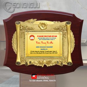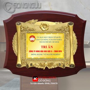 Biểu trưng tri ân tấm lòng vàng, kỷ niệm chương gỗ đồng, biểu trưng tôn vinh, tri ân đóng góp, cống hiến, đồng hành, bảng biểu trưng giá rẻ được sản xuất từ Công ty Song Ngưu. Nội dung thiết kế theo yêu cầu riêng. Đáp ứng được hầu hết những nhu cầu của khách hàng.