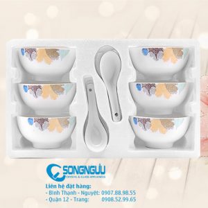 Bộ 6 chén sứ chỉ vàng làm quà tặng làm quà tặng khuyến mãi, quà tặng khách hàng, chén sứ in logo, bộ tô quà tặng. Xưởng in gốm sứ, thủy tinh gia dụng – phù hợp nhiều thương hiệu khác nhau.
