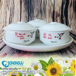 Bộ 6 thố có nắp làm quà tặng, quà tặng tri ân khách hàng, bộ thố giá rẻ, bộ thố in logo tặng kèm sản phẩm. Bộ tô sứ, bộ chén sứ làm khuyến mãi. Xưởng in gốm sứ, thủy tinh.