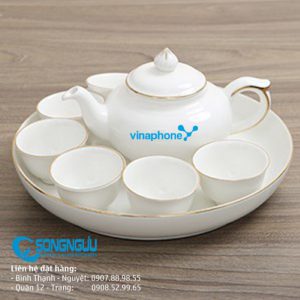 Bộ bình trà sứ trắng chỉ vàng, quà tặng tri ân khách hàng, bộ bình trà sứ giá rẻ, in logo bộ quà tặng. Bộ bình trà tặng khách hàng, bộ bình sứ giá rẻ. Xưởng in gốm sứ, thủy tinh gia dụng.