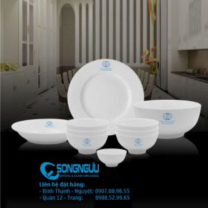 Bộ chén tô dĩa sứ trắng in làm quà tặng sản xuất số lượng lớn trong thời gian nhanh nhất hoặc theo thời gian yêu cầu riêng. Dịch vụ trọn gói, giá thành cạnh tranh, giao hàng đúng hẹn.