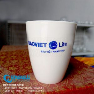 Ca sứ trắng không quai in quà tặng sản xuất số lượng lớn trong thời gian nhanh nhất hoặc theo thời gian yêu cầu riêng. Dịch vụ trọn gói, giá thành cạnh tranh, giao hàng đúng hẹn.