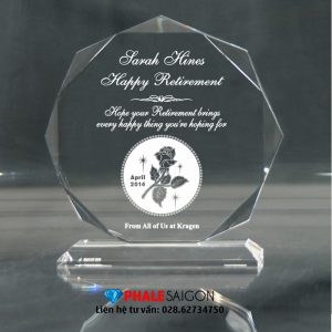 Kỷ niệm chương pha lê tôn vinh, quà tặng tôn vinh, vinh danh hay tri ân. Biểu trưng pha lê giá rẻ, xưởng sản xuất pha lê tại Tp.HCM. Mẫu phong phú, làm nhanh theo yêu cầu.
