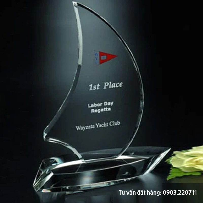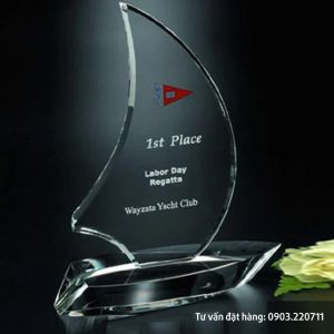Kỷ niệm chương pha lê cánh buồm đẹp, mang tính thẩm mỹ và ý nghĩa cao. Mẫu tùy chọn hay làm theo thiết kế riêng, nội dung theo yêu cầu từng khách hàng. Làm được hầu hết các loại cúp pha lê. Mang đến cho khách hàng sự hài lòng cao nhất