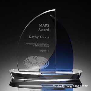 Kỷ niệm chương pha lê cánh buồm, quà tặng tôn vinh, vinh danh hay tri ân. Biểu trưng pha lê giá rẻ, xưởng sản xuất pha lê tại Tp.HCM. Mẫu phong phú, làm nhanh theo yêu cầu.