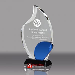 Kỷ niệm chương pha lê ngọn lửa xanh, quà tặng tôn vinh, vinh danh hay tri ân. Biểu trưng pha lê giá rẻ, xưởng sản xuất cúp pha lê. Mẫu phong phú, làm nhanh theo yêu cầu.