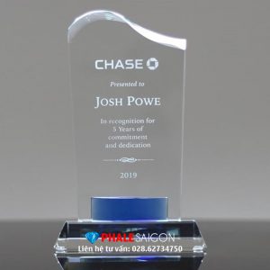 Kỷ niệm chương thâm niên 10 năm, quà tặng vinh danh, kỷ niệm chương tri ân được làm từ pha lê trong phối pha lê màu. Sản phẩm cao cấp, mẫu mã đa dạng và nội dung in khắc theo từng sự kiện. Kỷ niệm chương thâm niên 10 năm có thể thay đổi nhiều kích thước khác nhau. Xưởng đáp ứng được hầu hết các loại kỷ niệm chương pha lê theo yêu cầu riêng, mang đến cho khách hàng sự hài lòng cao nhất.