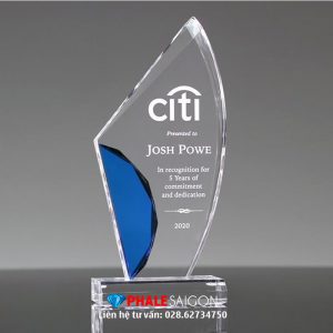 Kỷ niệm chương thâm niên 5 năm, quà tặng vinh danh, kỷ niệm chương tri ân được làm từ pha lê trong phối pha lê màu. Sản phẩm cao cấp, mẫu mã đa dạng và nội dung in khắc theo từng sự kiện. Kỷ niệm chương thâm niên 5 năm có thể thay đổi nhiều kích thước khác nhau. Xưởng đáp ứng được hầu hết các loại kỷ niệm chương pha lê theo yêu cầu riêng, mang đến cho khách hàng sự hài lòng cao nhất.