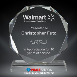 Kỷ niệm chương trao thưởng nhân viên xuất sắc, quà tặng vinh danh, kỷ niệm chương tri ân được làm từ pha lê trong phối pha lê màu. Sản phẩm cao cấp, mẫu mã đa dạng và nội dung in khắc theo từng sự kiện. Kỷ niệm chương trao thưởng nhân viên xuất sắc có thể thay đổi nhiều kích thước khác nhau. Xưởng đáp ứng được hầu hết các loại kỷ niệm chương pha lê theo yêu cầu riêng, mang đến cho khách hàng sự hài lòng cao nhất.