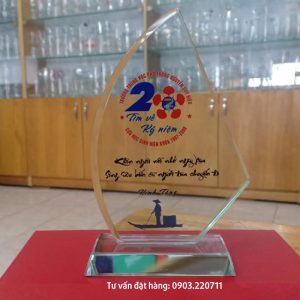Quà tặng kỷ niệm tốt nghiệp THPT, biểu trưng lưu niệm giá rẻ, Kỷ niệm chương vinh danh, tri ân, kỷ niệm chương khen thưởng được sản xuất từ thủy tinh. Kết hợp thêm một số màu khác để sản phậm được đẹp hơn. Nội dung thiết kế theo yêu cầu riêng.