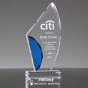 Quà tặng pha lê khen thưởng 5 năm, quà tặng tôn vinh, vinh danh hay tri ân. Kỷ niệm chương pha lê giá rẻ, xưởng sản xuất pha lê tại Tp.HCM. Mẫu phong phú, làm nhanh theo yêu cầu.