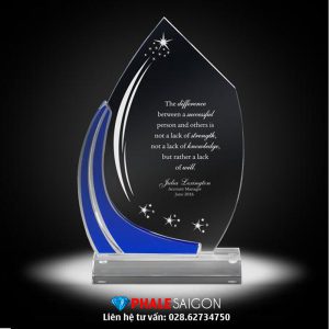 Quà tặng pha lê xanh khen thưởng đẹp, mang tính thẩm mỹ và ý nghĩa cao. Mẫu tùy chọn hay làm theo thiết kế riêng, nội dung theo yêu cầu từng khách hàng. Làm được hầu hết các loại cúp pha lê. Mang đến cho khách hàng sự hài lòng cao nhất