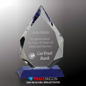 Quà tặng pha lê xanh khen thưởng, quà tặng tôn vinh, vinh danh hay tri ân. Biểu trưng pha lê giá rẻ, xưởng sản xuất cúp pha lê. Mẫu phong phú, làm nhanh theo yêu cầu.