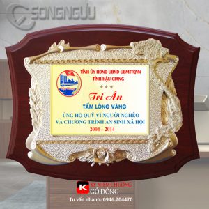 Quà tặng tri ân gỗ đồng, kỷ niệm chương gỗ đồng, biểu trưng tôn vinh gỗ đồng. Bảng vinh danh mạnh thường quân, tri ân nhà tài trợ, bảng biểu trưng giá rẻ được sản xuất từ Công ty Song Ngưu. Nội dung thiết kế theo yêu cầu riêng. Đáp ứng được hầu hết những nhu cầu của khách hàng.